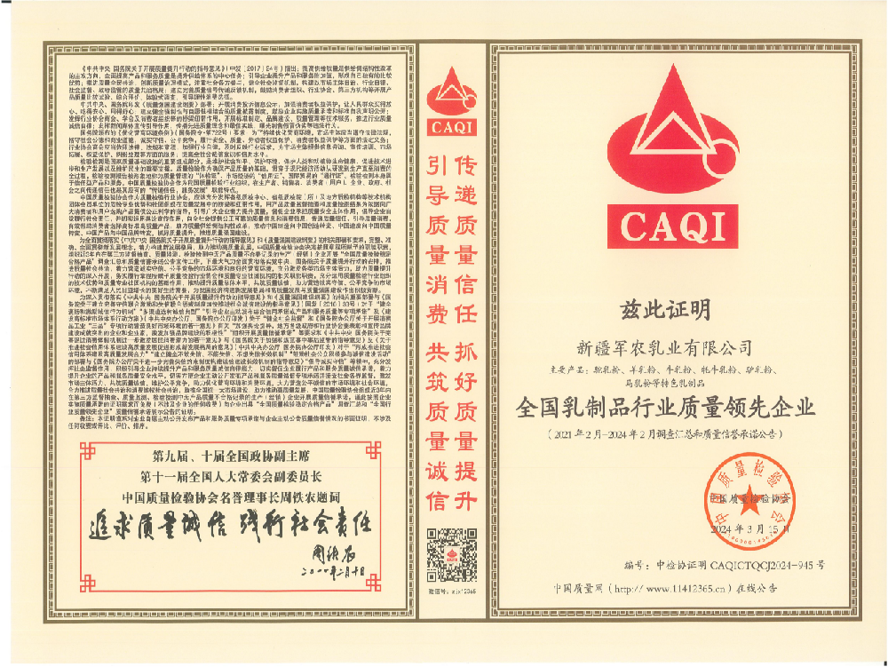 目前,新疆軍農乳業有限公司已發展成一家集畜牧養殖、生鮮乳收購、產品研發、液態奶生產加工、及市場服務為一體的全產業鏈乳制品生產企業。新疆軍農乳業不斷對駱駝乳、羊乳、牦牛乳、驢乳、馬乳等新疆特色乳品開發,建設全國標準化全透明乳品樣板工廠,從產業布局、科學養殖、原料奶收購、生產加工及市場銷售等環節加強規范,以市場化角度引導企業健康競爭,拓展發展空間,推動新疆特色乳制品這個朝陽產業做大做強,努力使特色產業轉化為優勢產業。